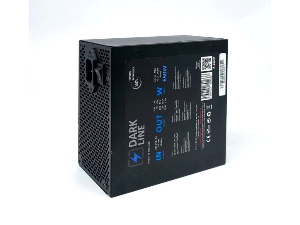 Nová rada napájacích zdrojov DARK LINE prináša moderné riešenie pre stabilné a efektívne napájanie počítača. DARK LINE séria využíva na sekundárnej strane synchronné usmerňovanie s MOSFET tranzistormi namiesto klasických diod, čo prináša vyššiu účinnosť, nižšie tepelné straty a stabilnejšie napätie pod záťažou. S minimálne 88% typickou účinnosťou, silnou 12V vetvou s výkonom 564W a tichým 12cm ventilátorom s fluidným ložiskom predstavuje zaujímavú voľbu aj pre náročnejšie zostavy. Kvalitná lepená káblová sústava zabezpečuje čisté a prehľadné usporiadanie vo vnútri skrine.