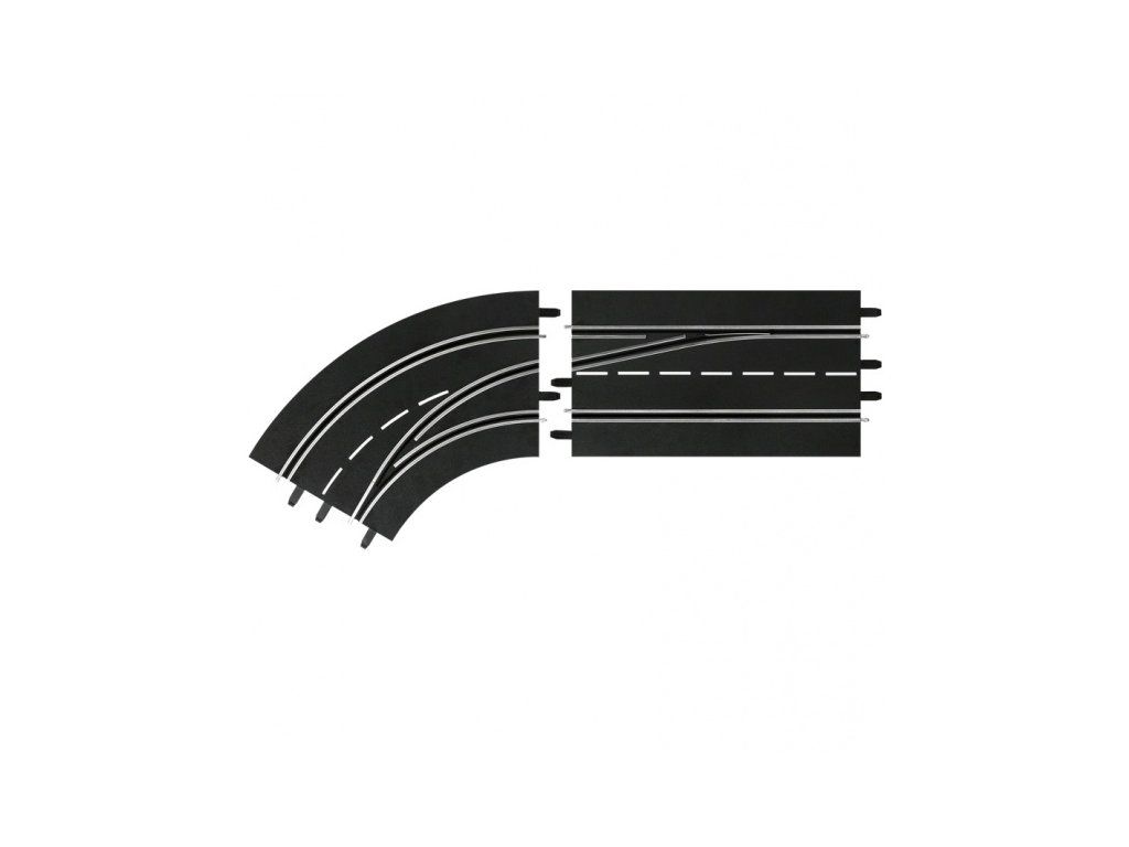 Predbiehanie do zatáčky - ľavé, vnútorné pre autodráhy Digital 132 a Digital 124.Špeciálny diel pre autodráhy Digital 132 a Digital 124, ktorý umožňuje predbiehať do druhej dráhy.