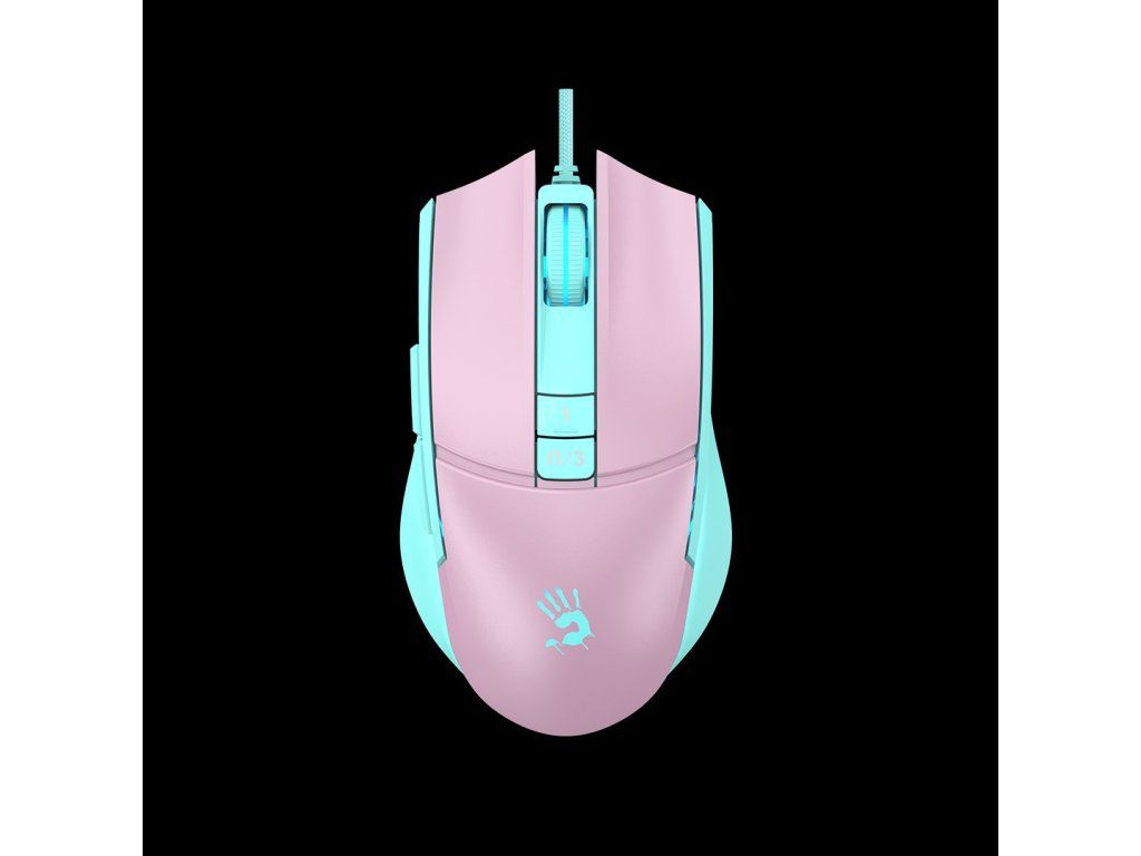 A4tech Bloody Myš L65 Max, podsvícená herní myš, 12000 DPI, USB, Růžová