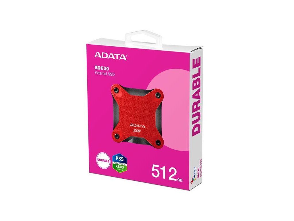 ADATA Externí SSD 512GB SD620, USB Micro-B, USB 3.2 Gen 2, R:520/W:460MB/s, červená
