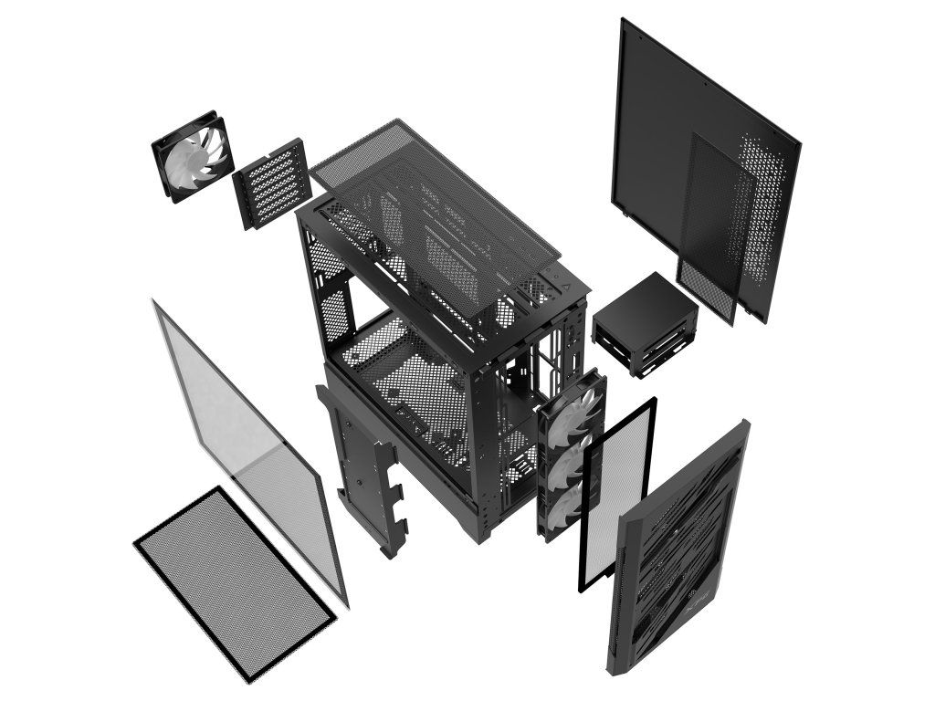 Podporované chlazení : *Přední ventilátory: 3 x 120 mm , 3 x 140 mm *Horní ventilátory: 3 x 120 mm , 2 x 140 mm *Zadní ventilátory:1 x 120 mm, 1 x 140 mm *PSU Shroud: 120mm x 3 *Boční: 2x 120mm (když se odstraní e-atc bracket) *Přední radiátor:360 / 280 / 240 mm *Horní radiátor:360 / 280 / 240 mm *Zadní radiátor:140/ 120 mm