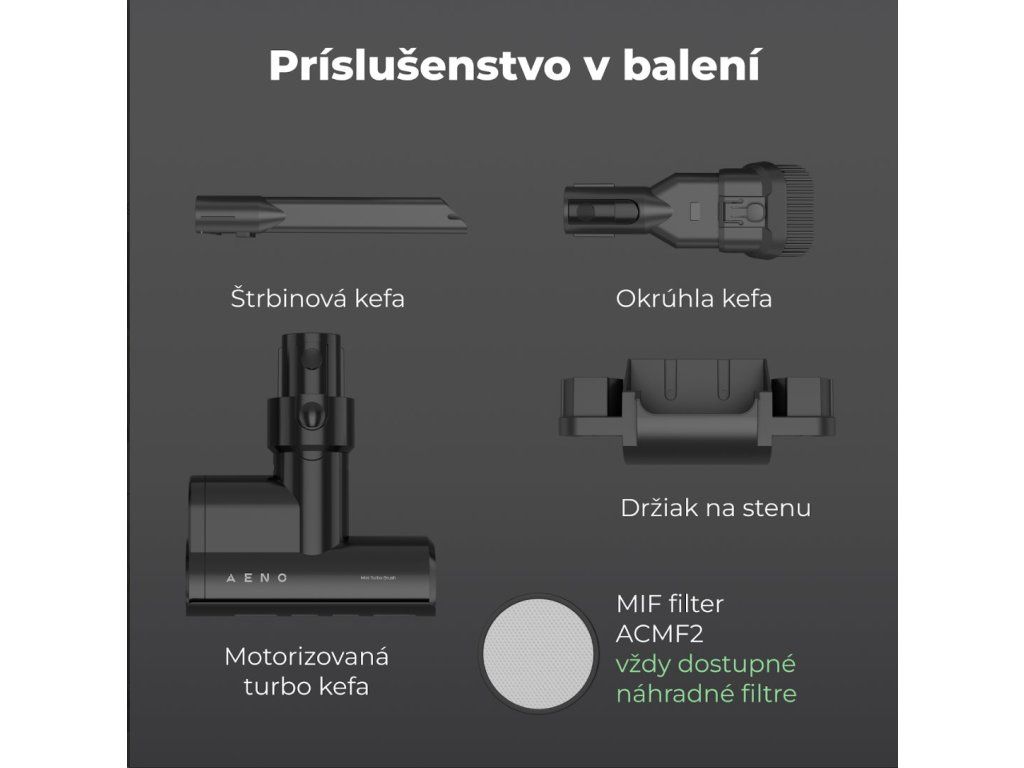 AENO Tyčový vysavač SC2, Turbo kefa, LED, AI nastavenie sacej sily, 60m