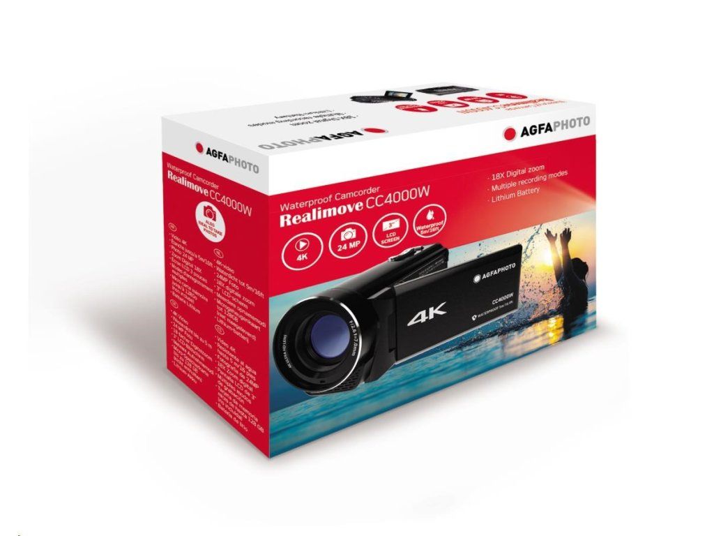 Vodotesná videokamera Agfa Photo Realimove CC4000W je ideálna pre amatérov aj odolných tvorcov video obsahu. Jej kvalita videa a fotografií, pružný displej, 18× digitálny zoom a možnosť natáčať 4K videá si zamilujete!