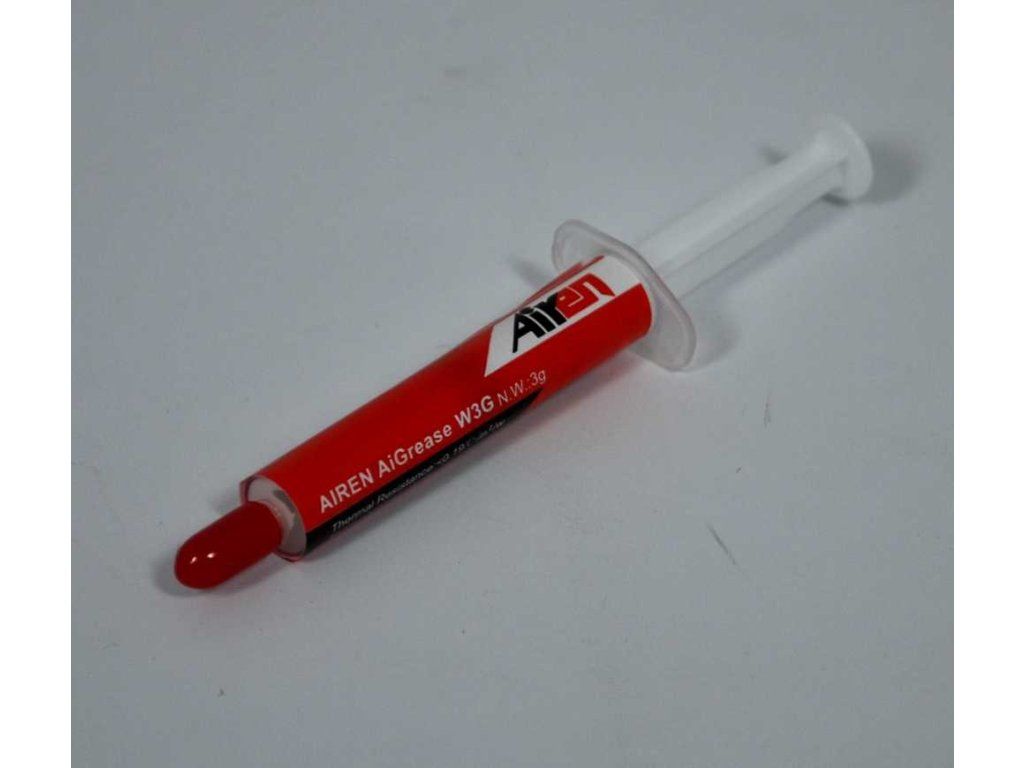 Velice kvalitní teplovodivá bílá pasta ve stříkačce AIREN GREASE AiGrease 3g s ideálním přenosem tepla, dokonalým roztíráním a jednoduchou aplikací. Tepelný odpor: do 0,19°C Tepelná vodivost: více než 2,5W/m.kDodatočné parametre