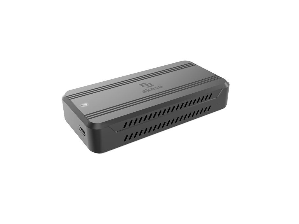 Akasa Aluminium Enclosure USB4 40 Gb/s M.2 PCIe NVMe SSD hliníková krabička Tato krabička podporuje různé velikosti M.2 PCIe NVMe SSD, včetně 42 mm (2242), 60 mm (2260) a 80 mm (2280), což nabízí flexibilní a efektivní řešení úložiště pro jakoukoli potřebu. * integrované chlazení: vestavěný ventilátor a chladič SSD pro udržení optimální teploty a výkonu SSD * vysokorychlostní přenos dat: nabízí rychlost přenosu dat až 40 Gb/s se zpětnou kompatibilitou pro Thunderbolt 3 a USB 3.2 * vysoce výkonný chladicí systém s ventilátorem s 8000 ot./min., který zabraňuje přehřívání a zajišťuje optimální výkon během náročných úkolů
