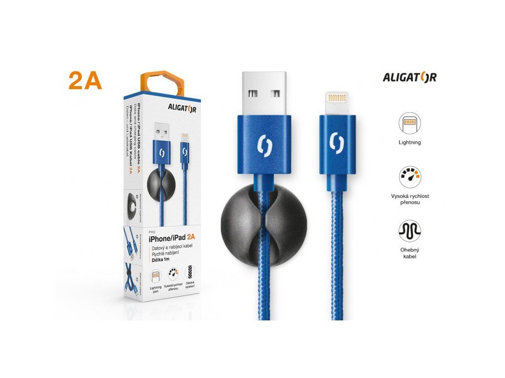 ALIGATOR PREMIUM Dátový kábel 2A, Lightning modrý