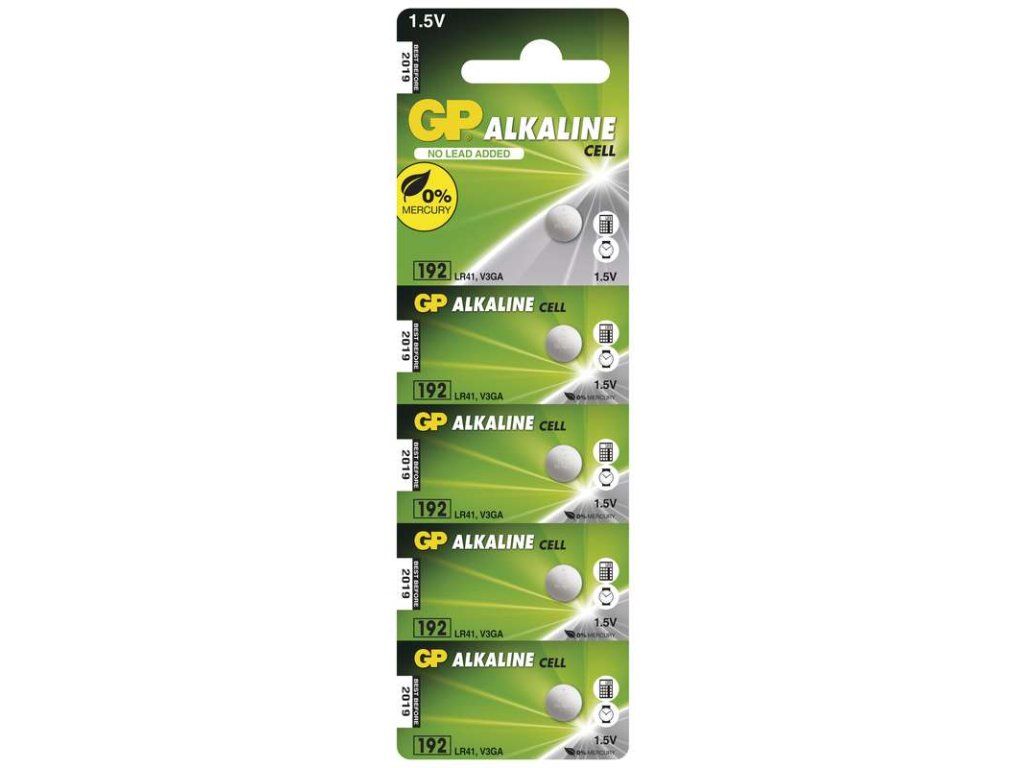 typové označení GP 192F (LR41, V3GA) chemické složení alkalické kategorie/řada Alkaline cell napětí 1,5 V možnost nabíjení ne jmenovitá kapacita 24 mAh (při zátěži 6,2 kOhm) hmotnost neuvádí se rozměr 7,9 × 3,60 mm prodejní obal 5 ks, blistrDodatočné parametre