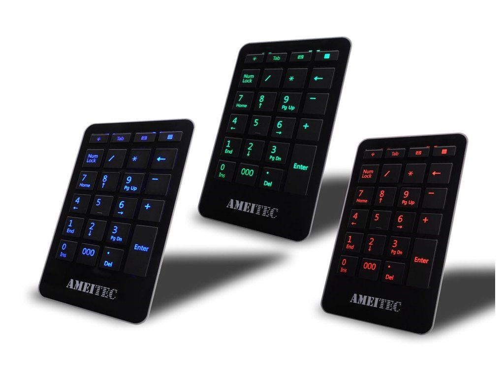 Firma Ameitec představila designově povedený keypad, který svým tvarem připomíná iPhone 4. Lehký a snadno přenositelný keypad uvítají majitelé notebooku nebo netbooku bez numerické klavesnice. I v nepříznivých světelných podmínkách se Vám neztratí, má velice příjemně barevně podsvícená tlačítka. Kabel je svinovací, aby se Vám nikde neválel a nebo nezamotal. Najdete na něm kromě standartních tlačítek i další, jako například ''kalkulačka'', ''email'', ''tabulator'', ''osvětlení'', ''000''. Počet kláves: 23 Barva podsvícení: zelená Připojení: USB Délka kabelu: 11 - 73cm (svinovací) Rozměry (produktu H x Š x V): 14,7cm x 9cm x 1,8cm Rozměry (balení H x Š x V): 10,4cm x 18,8cm x 3,1cmDodatočné parametre