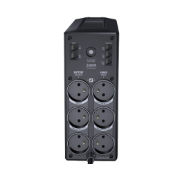 6x klasická zásuvka typu French ( 3 na zálohovanie, 3 na prepäťovú ochranu )
