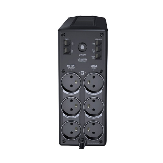 na prepäťovú ochranu a okrem toho obsahuje aj ochranu pre dátove linky. Predný panel obsahuje LCD displej, ktorý Vám umožní sledovať stav záložného zdroja.