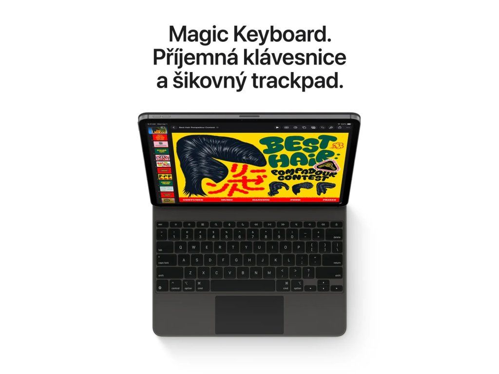 Displej: 12,9'' Liquid Retina Multi-Touch displej s LED podsvícením a technologií IPS, 2732x2048 při 264ppi, 600 nitů, antireflexní, oleofobní úprava proti šmouhám, True Tone