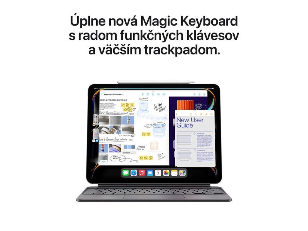 APPLE PENCIL A MAGIC KEYBOARD K IPADU PRO – S ceruzkou Apple Pencil Pro môžeš iPad Pro premeniť na maliarske plátno alebo najlepší zápisník od Apple. S iPadom Pro je kompatibilná aj ceruzka Apple Pencil (USB-C). Klávesnica Magic Keyboard k iPadu Pro je tenká a ľahká, pohodlne sa na nej píše a má vstavaný sklenený trackpad s haptickou odozvou. Zároveň je to kryt, ktorý iPad chráni. Doplnky sa predávajú samostatne.