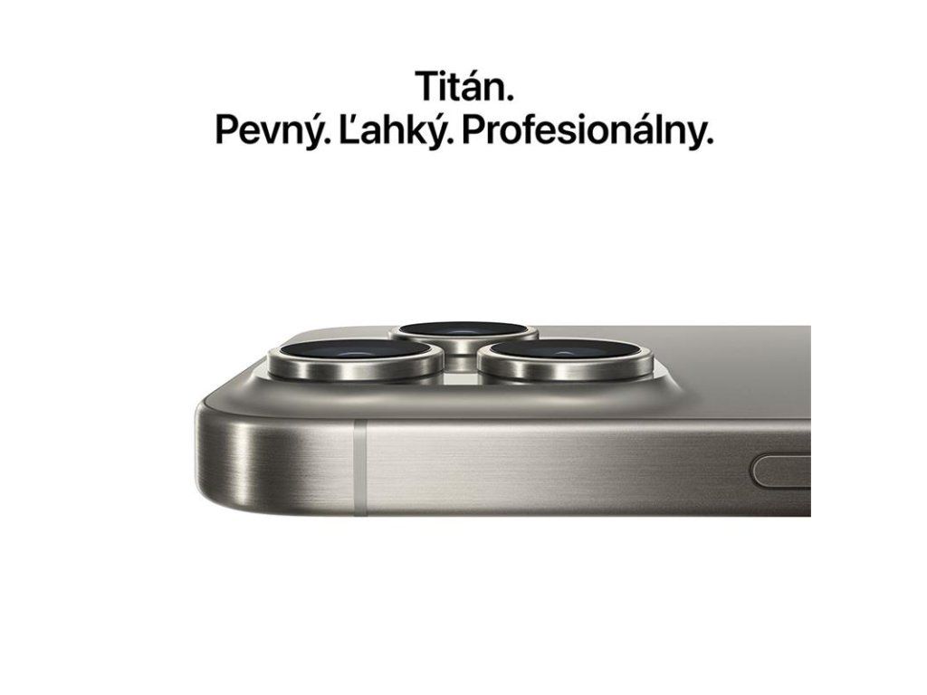 iPhone 15 Pro Max. Vyrobený z titánu a vybavený prelomovým čipom A17 Pro, prispôsobiteľným tlačidlom Action a najvýkonnejším kamerovým systémom iPhone všetkých čias. KOVANÝ V TITÁNE - iPhone 15 Pro Max má pevný a ľahký titánový dizajn na úrovni leteckého priemyslu s textúrovanou zadnou stranou z matného skla. Má tiež prednú časť Ceramic Shield, ktorá je odolnejšia ako akékoľvek sklo na smartfón. A je odolný voči vode a prachu. POKROČILÝ DISPLEJ - 6,7" Super Retina XDR displej s funkciou ProMotion zvyšuje obnovovaciu frekvenciu na 120 Hz, keď potrebujete výnimočný grafický výkon. Dynamic Island zobrazuje upozornenia a živé aktivity. Navyše, s Always-On displejom zostane vaša uzamknutá obrazovka viditeľná, takže na ňu nemusíte klepať, aby ste mali prehľad. ČIP A17 PRO MENÍ HRU - GPU triedy Pro robí mobilné hry tak pohlcujúcim pocitom, s bohatými prostrediami a realistickými postavami. A17 Pro je tiež neuveriteľne efektívny a pomáha zabezpečiť úžasnú celodennú výdrž batérie. VÝKONNÝ SYSTÉM PRO CAMERA - Získajte neuveriteľnú flexibilitu pri snímaní so 7 profesionálnymi objektívmi. Zachyťte fotografie v super vysokom rozlíšení s väčším množstvom farieb a detailov pomocou 48MP hlavného fotoaparátu. A urobte ostrejšie zábery z väčšej vzdialenosti pomocou 5x teleobjektívu na iPhone 15 Pro Max. PRISPÔSOBITEĽNÉ AKČNÉ TLAČIDLO - Akčné tlačidlo predstavuje rýchlu cestu k vašej obľúbenej funkcii. Stačí nastaviť požadovaný režim, napríklad Tichý režim, Fotoaparát, Hlasová poznámka, Skratka a ďalšie. Potom stlačením a podržaním spustíte akciu. PRIPOJENIE PRO - Nový konektor USB-C vám umožňuje nabíjať Mac alebo iPad rovnakým káblom, aký používate na nabíjanie iPhone 15 Pro Max. S USB 3 získate obrovský skok v rýchlosti prenosu dát. A pomocou Wi-Fi 6E môžete sťahovať súbory až 2x rýchlejšie. DÔLEŽITÉ BEZPEČNOSTNÉ FUNKCIE - Vďaka detekcii havárie dokáže iPhone rozpoznať vážnu autonehodu a privolať pomoc, ak nemôžete. NAVRHNUTÝ PRE ZMENU - iPhone sa dodáva s ochranou súkromia, ktorá vám pomôže udržať si kontrolu nad vašimi údajmi. Je vyrobený z väčšieho množstva recyklovaných materiálov, aby sa minimalizoval dopad na životné prostredie. A má vstavané funkcie, vďaka ktorým je iPhone prístupnejší pre všetkých.Dodatočné parametre