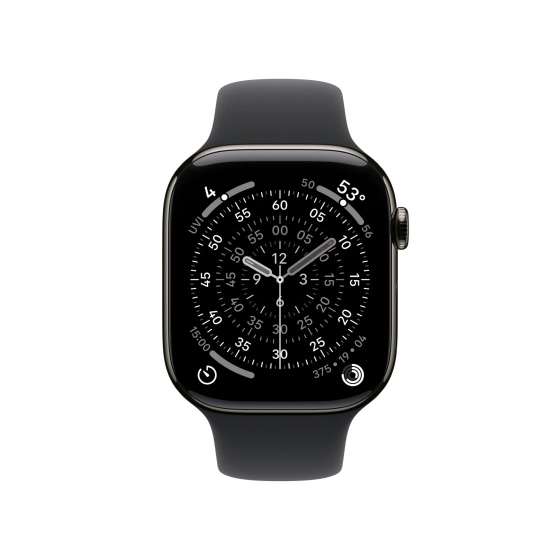 Apple Watch Series 11 Cellular Sport Band břidlicově šedé/černé M/L * pro zápěstí s obvodem 130–200 mm * korunka Digital Crown s haptickou odezvou * reproduktor/mikrofon