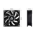 Tichý ventilátor Arctic Fan F8 TC je určen jako náhrada za stávající méně kvalitní ventilátory v počítači k dodatečnému chlazení procesorů i jiných komponent a celkovému zlepšení stavu proudění vzduchu uvnitř PC. Ventilátor o průměru 80 mm a výšce 25 mm je opatřen kvalitními Fluid Dynamic ložisky, které zaručují delší životnost. Chladič Fan F8 TC obsahuje sensor pro detekci teploty a v závislosti na aktuální teplotě reguluje automaticky rychlost otáček, a to již od 500 do 2000 ot./min. S tím souvisí i produkce hluku, která se pohybuje v rozmezí od téměř neslyšitelných 0.01 do max. 0.3 Sone. Díky těmto vlastnostem Váš počítač nebude zbytečně hlučný a komponenty budou chlazeny efektivně a s maximální účinností právě v ten pravý okamžik. Fan Speed: 500 - 2000 rpm Airflow: 31 CFM/ 52.7 m3/h Static Pressure: 1 mm H2O Noise Level: 0.3 Sone Operating Ambient Temperature: 0 - 40 °C Fan Fan Frame: Standard Control Type: Temperature Control Connector: 3-Pin-Connector Fan Bearing: Fluid Dynamic Bearing Electric Characteristics: Typical Voltage: 12 V DC Starting Voltage: 5.5 V Current/ Voltage: 0.16 A / 12 V Cable Lenght: 400 mm Size & Weight Lenght: 80 mm Width: 80 mm Height: 25 mm Weight: 72 g