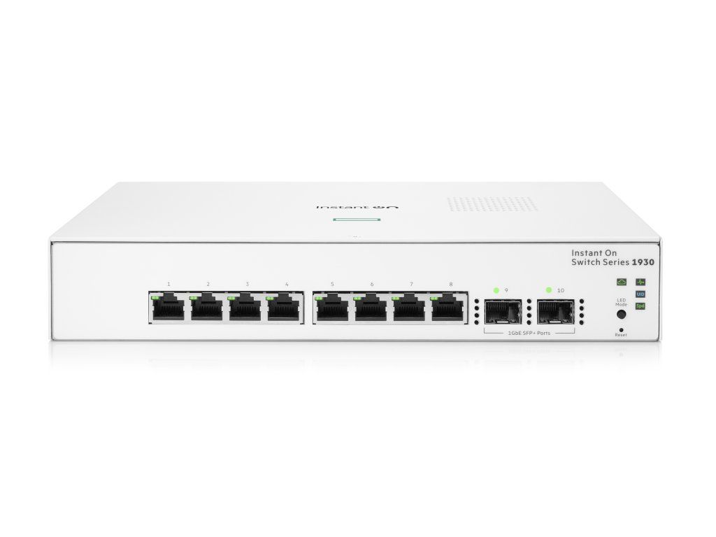 Aruba Instant On usnadňuje udržení spokojenosti uživatelů sítě, připojení mobilních zařízení, zařízení IoT a zabezpečení vaší sítě. Přepínače Aruba Instant On 1930 jsou pokročilé, inteligentně spravované gigabitové přepínače s pevnou konfigurací navrženy pro malé podniky, které lze snadno nasadit a jsou dostupné. Jsou vyrobeny tak, aby zvládly dnešní aplikace s velkou šířkou pásma, jako jsou hlasové a video konference, které umožňují konzistentní připojení a zvyšují výkon.