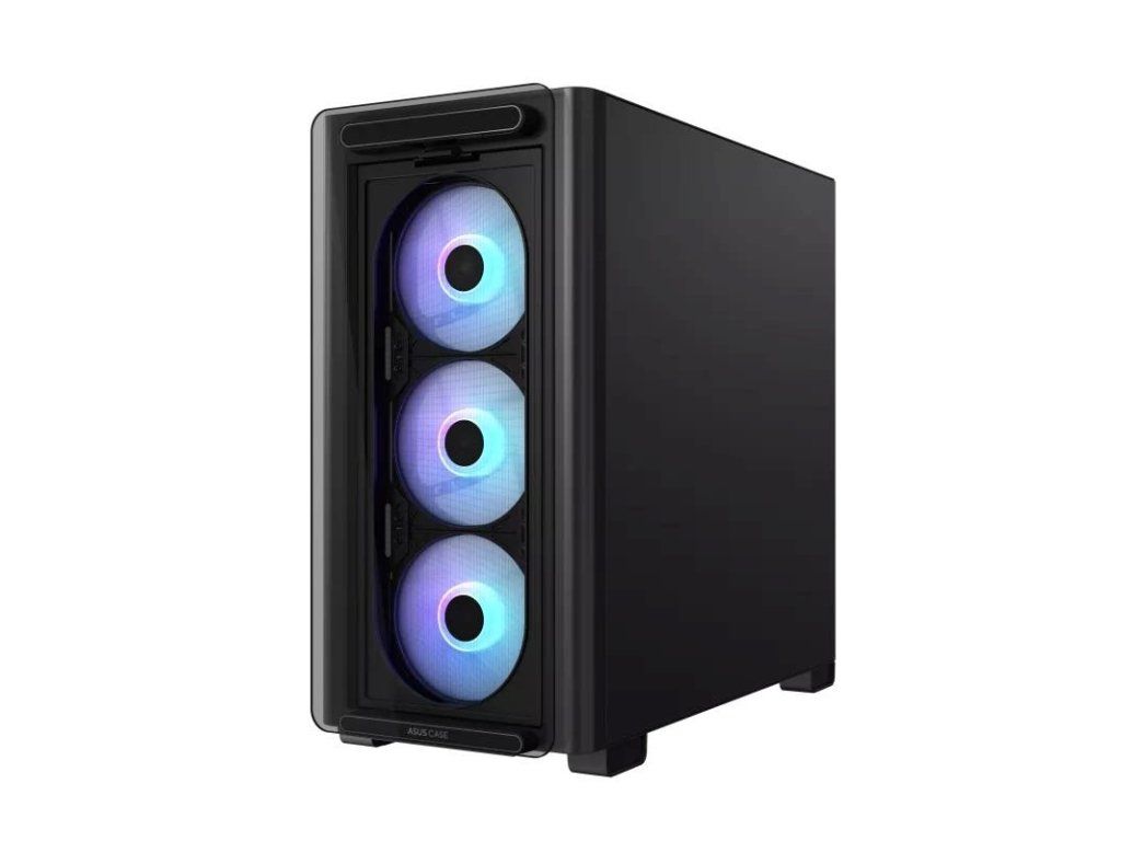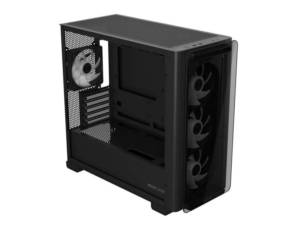 PC Skrinka ASUS A23 PLUS micro-ATX ponúka podporu pre základné dosky so skrytými konektormi, radiátory 360mm a až 380mm dlhé grafické karty, štyrmi predinštalovanými ventilátormi ARGB.