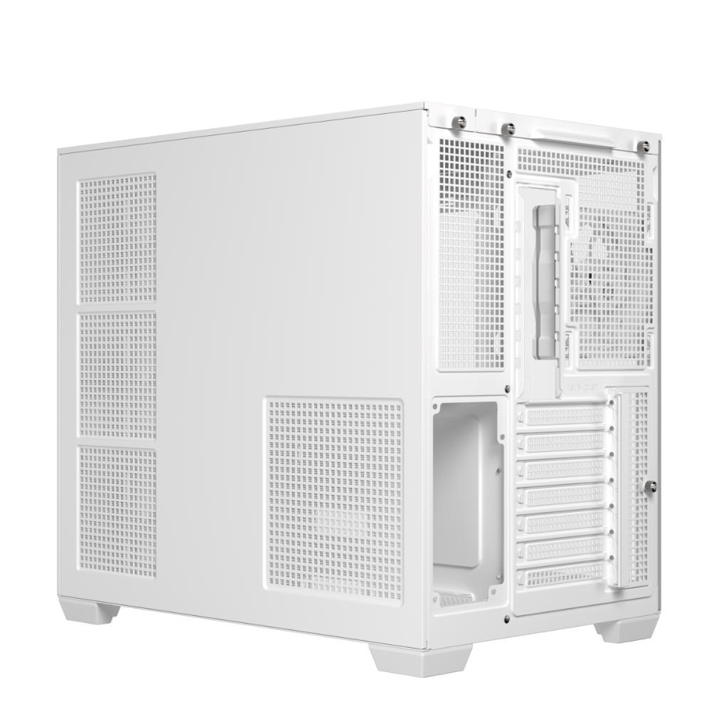 Skriňa ASUS A32 PLUS ATX ponúka podporu pre 360mm radiátory a 420mm grafické karty, s možnosťou výberu čiernej alebo bielej farby, štyrmi predmontovanými ARGB ventilátormi a čistým vedením káblov.