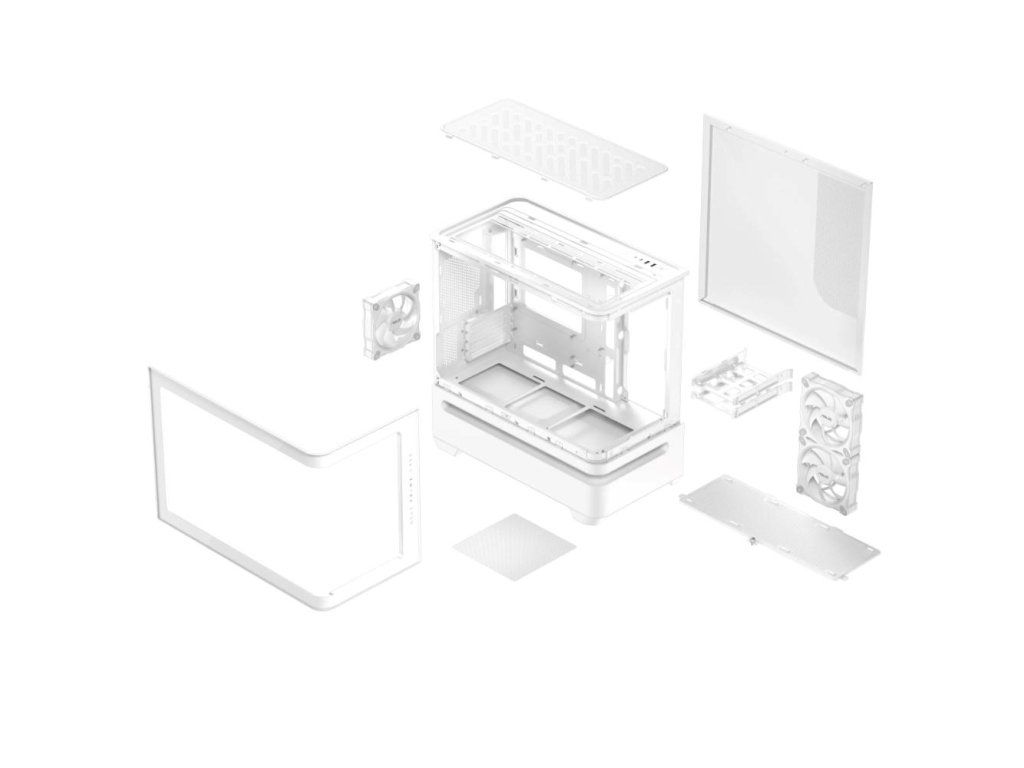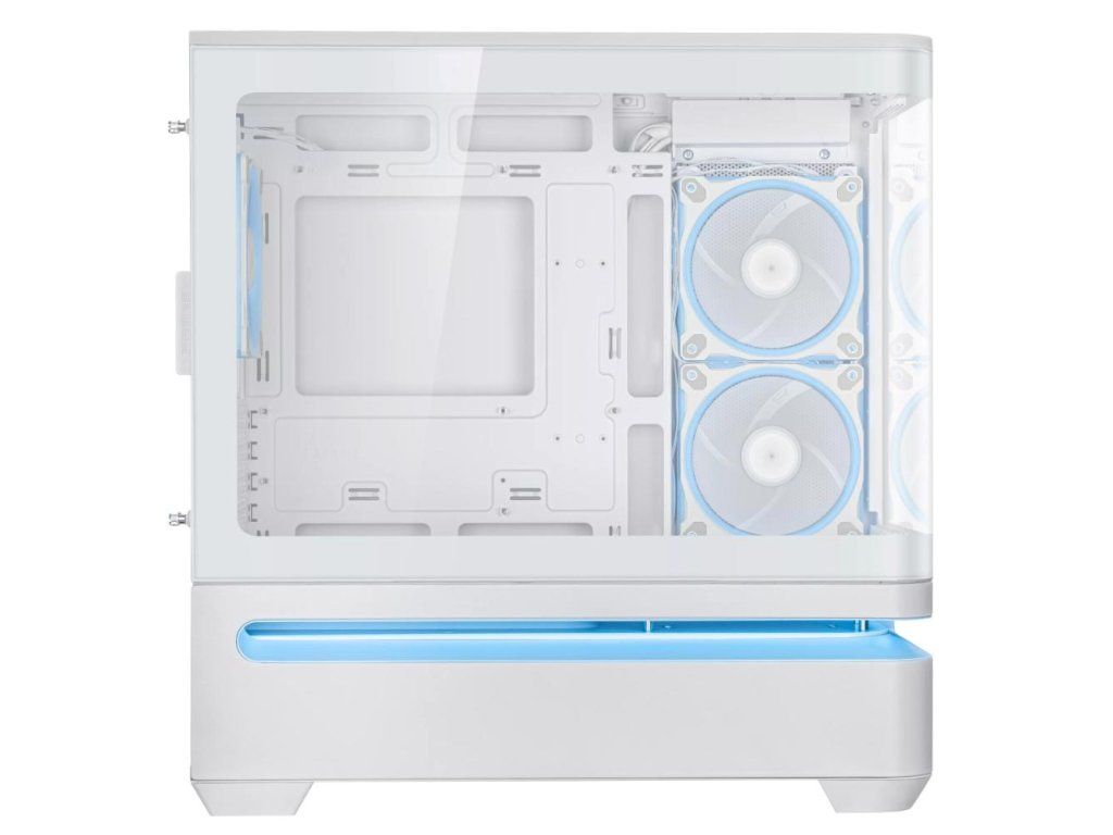 - Zakrivený panel zo tvrdeného skla plynule prechádza z prednej strany na bočnú a ponúka panoramatický výhľad na komponenty z takmer každého uhla.