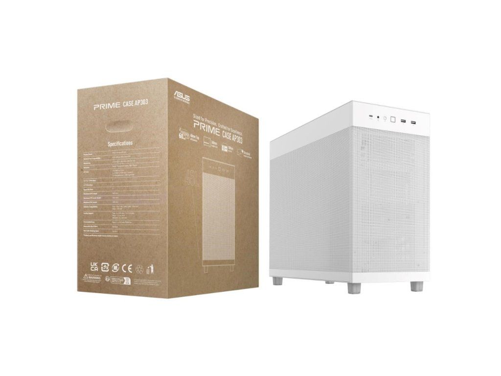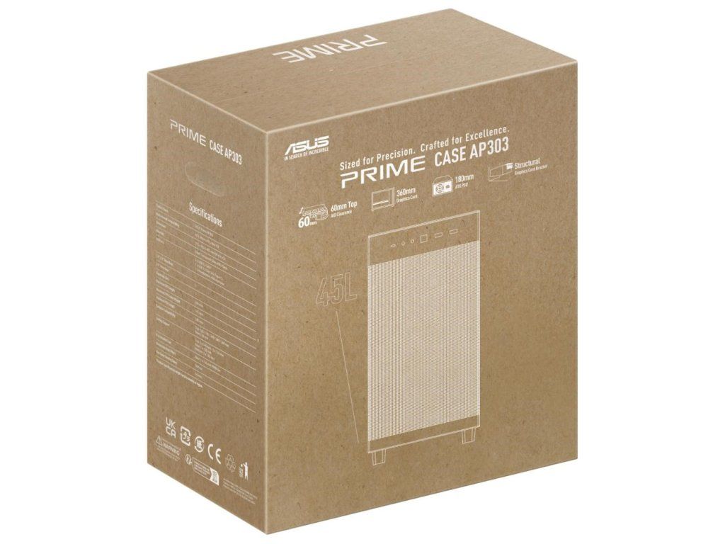 ASUS Prime AP303 je kompaktná ATX skrinka s objemom 44 litrov, ktorá podporuje grafické karty až do dĺžky 360 mm, radiátory do 360 mm a hrúbky do 60 mm a ATX zdroje až do dĺžky 180 mm.