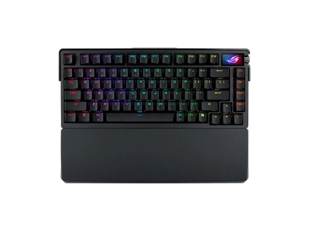 ROG Azoth Extreme je prispôsobiteľná 75% herná klávesnica s prémiovým šasím z hliníkovej zliatiny a kovovým rámom. Vyznačuje sa rýchlosťou hlásenia 8000 Hz s ROG Polling Rate Booster a viac než 1600 hodín výdrže batérie v bezdrôtovom režime ROG SpeedNova 2,4 GHz. Vylepšený OLED dotykový displej a trojpólový knoflík umožňujú sledovanie systému a rýchle nastavenie. Polohovacia doska z uhlíkovej ocele zabezpečuje ostrý zvuk pri písaní, zatiaľ čo tri tlmiace vrstvy absorbujú vibrácie. Nastaviteľný držiak tesnenia s pádly spínača ponúka dve možnosti písania.