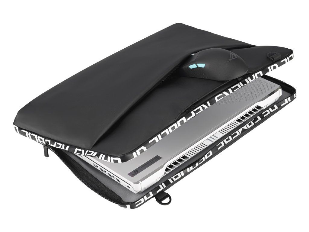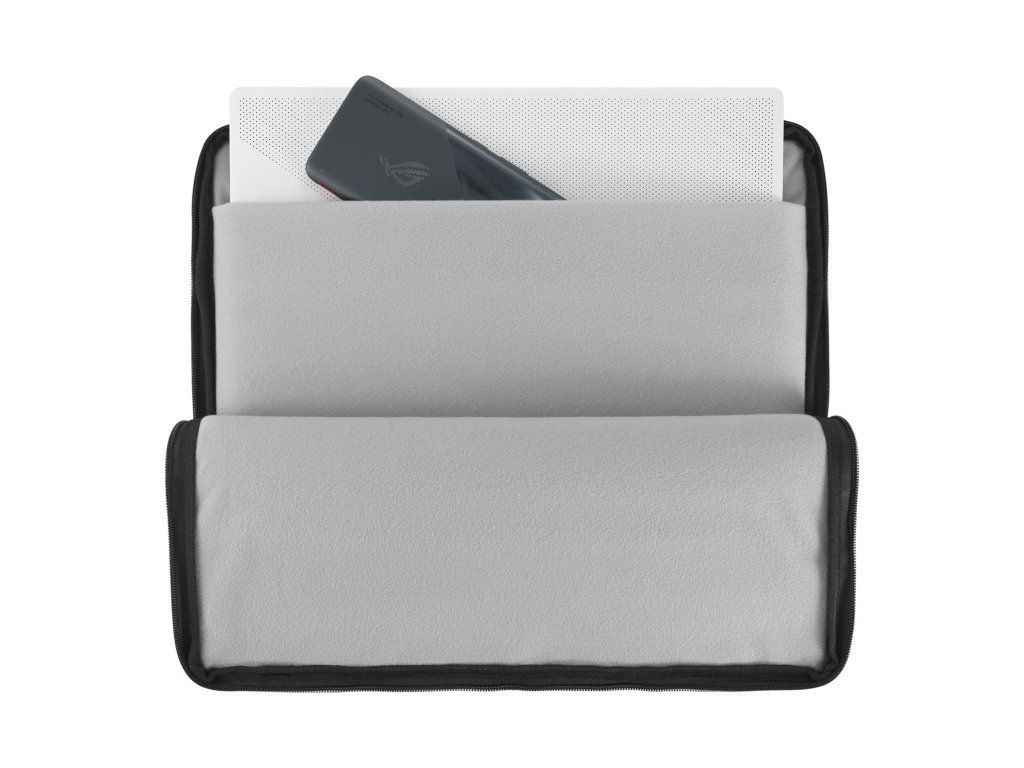 ASUS ROG Ranger Carry Sleeve 16 Ať prší, nebo svítí slunce, pouzdro ROG Ranger Carry Sleeve 16 poskytuje všestrannou ochranu notebooku a dalšího herního vybavení. Jeho stylová voděodolná konstrukce zahrnuje odnímatelné přezky a nastavitelný ramenní popruh, což vám umožní používat pouzdro třemi různými způsoby. Pouzdro ROG Ranger Carry Sleeve 16 se pyšní prvotřídním vzhledem díky elegantnímu jednobarevnému provedení a jemným ROG akcentům. Snadno se do něj vejde až 16palcový notebook a disponuje i vnější kapsou na zip pro další vybavení. Pouzdro Ranger Carry se odlišuje od ostatních ochranných pouzder propracovanými detaily - od provedení z polyesteru a polyuretanu odpuzujícího vodu až po gravírované kovové jezdce na zipu a tkaný popruh. Forma se snoubí s funkčností v každém promyšleném detailu. Díky odnímatelnému popruhu můžete pouzdro ROG Ranger Carry Sleeve 16 používat třemi různými způsoby - dát si ho přes rameno, přenášet pomocí textilního držadla nebo se obejít bez popruhu a vložit jej do tašky. Špičkový hardware si zaslouží kvalitní ochranu. Pouzdro ROG Ranger Carry Sleeve 16 je navrženo pro každodenní používání a je opatřeno více vrstvami z polyesteru 600D a polyuretanu, které chrání před běžnými oděrkami a nárazy. Navíc odpuzuje vodu, takže vaše cennosti budou v bezpečí před nepřízní počasí. Uvnitř je pouzdro Ranger Carry Sleeve vystláno 8mm EPE pěnou a opatřeno sametem, který chrání notebook a další zařízení před poškrábáním. Díky vestavěným kapsám můžete své oblíbené příslušenství nosit všude s sebou. Vnitřní kapsa je určena pro notebook a dokumenty, zatímco ve vnější kapse máte snadno po ruce to nezbytné na cestách.
