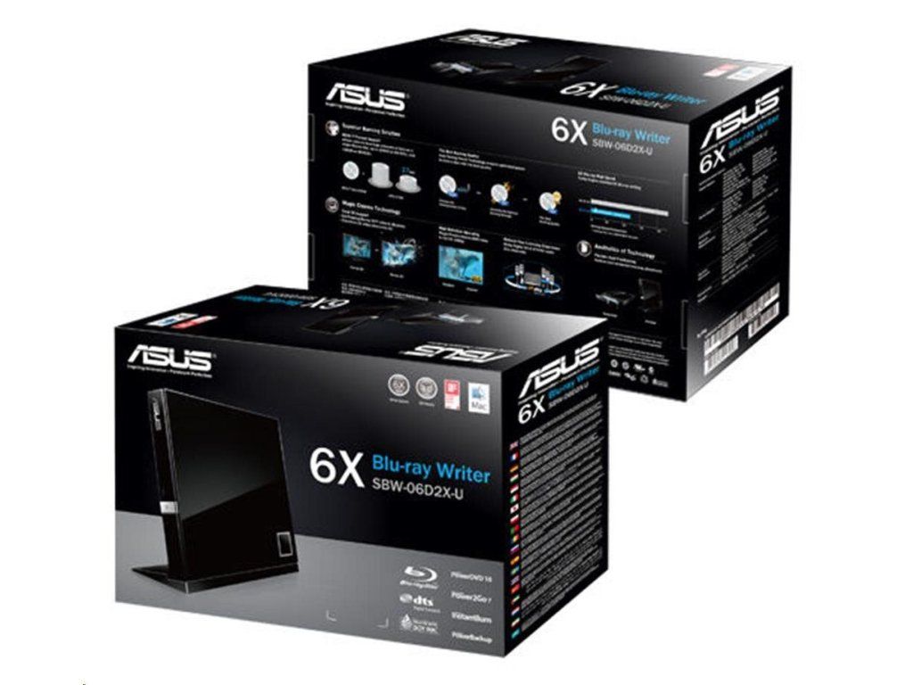 ASUS SBW-06D2X-U - prenosná 6X prenosná napaľovačka Blu-ray slim s podporou M-DISC na doživotné zálohovanie dát a kompatibilitou so systémami Windows a Mac OS