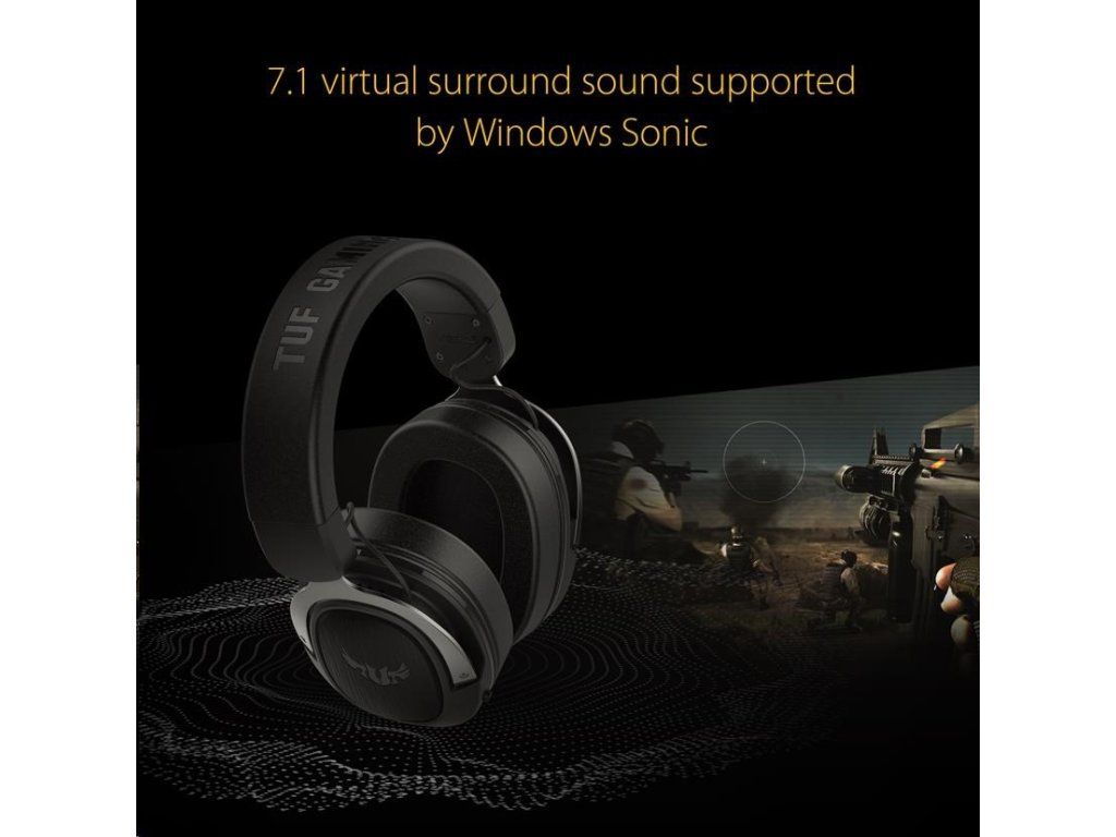 TUF Gaming H3 gaming headset for PC, PS5, Xbox One and Nintendo Switch, featuring 7.1 surround sound, deep bass, lightweight design, fast-cooling ear cushions