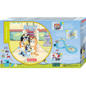 Autodráha Carrera FIRST dlhá 2,9 m s autíčkami Bluey a Bingo, pre deti od 3 rokov, na batérie, obsahuje rovinky, zákruty, bránu pre zábavnejšiu jazdu, ovládače a dekorácie s motívom Bluey a Bingo.