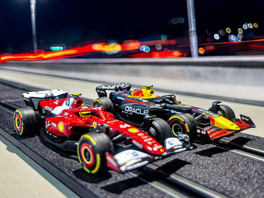 Autodráha Carrera GO!!! dlhá 6,3m s vozidlami F1 Red Bull a Ferrari, obsahuje križovatku, rovinky, zákruty, kolmú stenu, looping, diel s počítadlom kôl a ďalšie časti. Môžete si postaviť ďalšie rôzne trate podľa svojej fantázie.