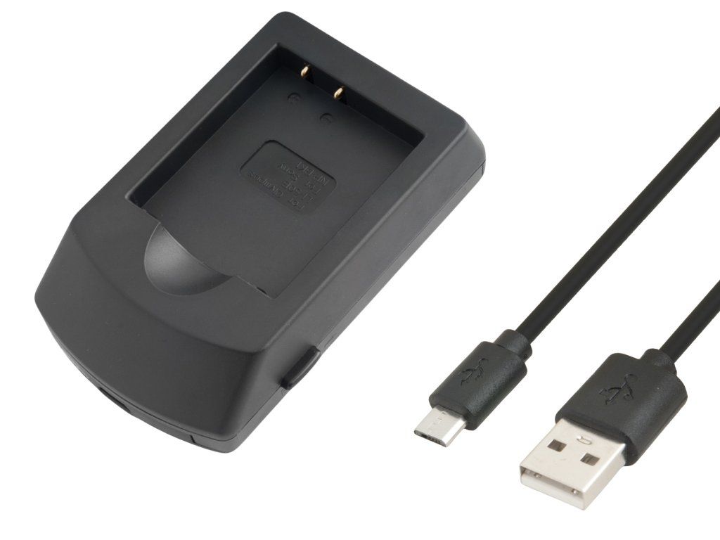 Nabíječka s Micro-USB vstupem pro baterie do fotoaparátů a videokamer.