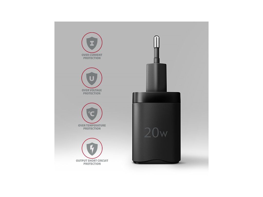 výkonu 20W dokáže nabíječka dobíjet telefony, tablety a další mobilní zařízení nejvyšší možnou rychlostí. Adaptér nabízí