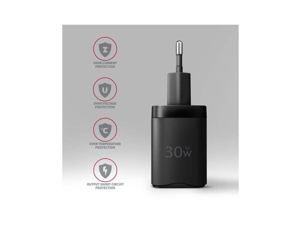 výkonu 30W nabíječka dobíjí telefony, tablety a další mobilní zařízení nejvyšší možnou rychlostí. Adaptér nabízí nejen standardní