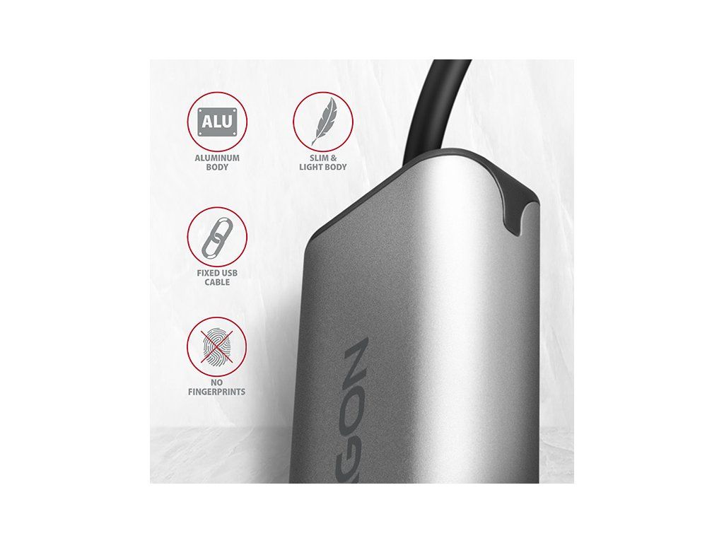 Vstup: • 1x USB 3.2 Gen 1 / SuperSpeed USB port, konektor USB-A male. • Zpětně kompatibilní s USB 3.1 Gen 1 / USB 3.0 a USB 2.0. • Podpora přenosových rychlostí 5.000 / 480 / 12 / 1.5 Mb/s (SuperSpeed / High / Full / Low speed). • Připojovací USB konektor typu A male (samec) umístěn na napevno uchyceném 15 cm kabelu.