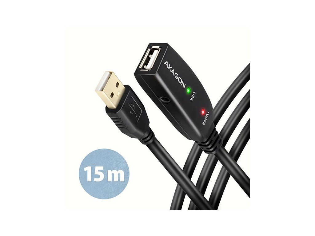 AXAGON ADR-215 délky 15 metrů je ideální k propojení Vašeho počítače s USB zařízením jako je myš, klávesnice, webkamera, tiskárna, skener, plotr a dalšími. Aktivní USB repeater kabel