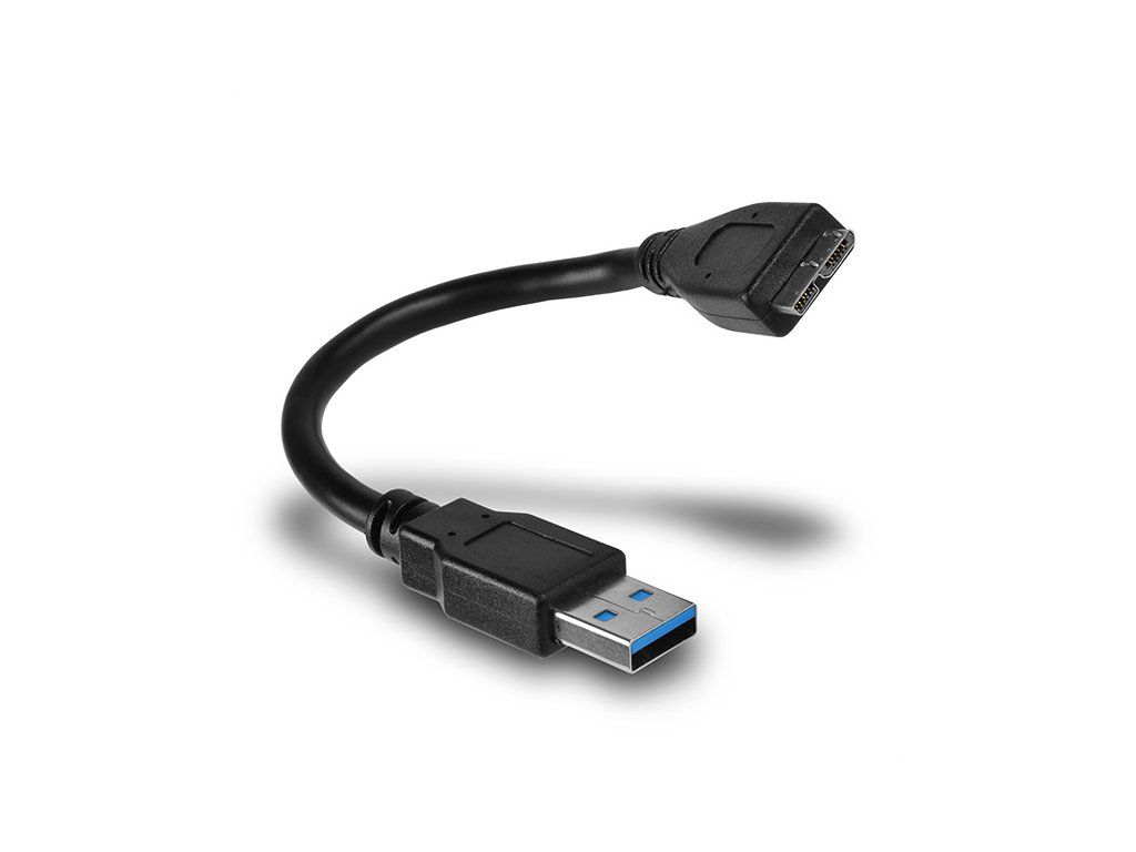 obsahuje: • USB 3.0 - SATA adaptér, USB 3.0 kabel délky 10 cm, samolepící pěnové vycpávky pro 7 mm HDD a SSD, plastové pouzdro.