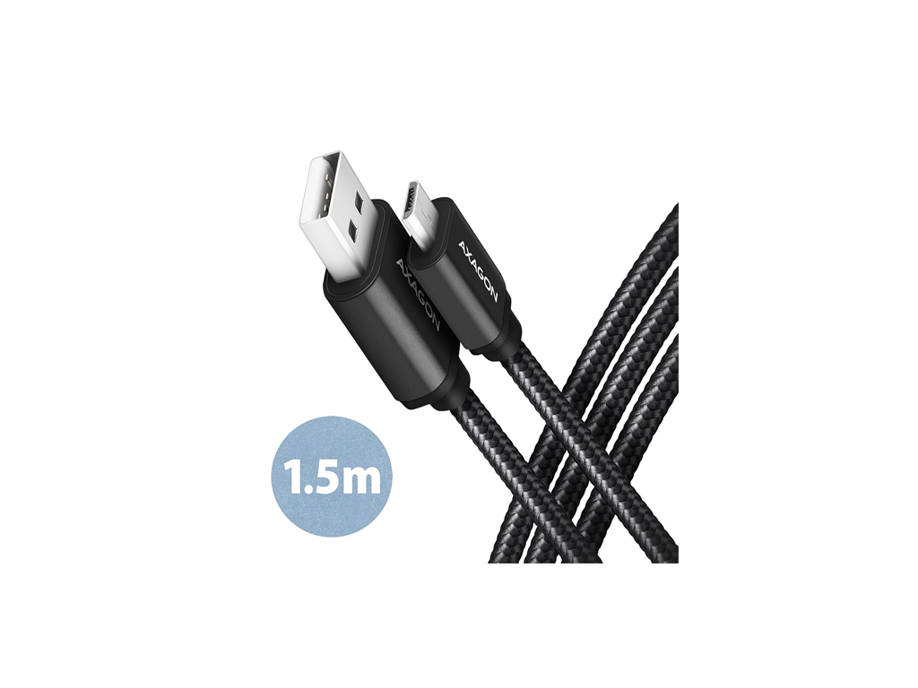 AXAGON BUMM-AM15AB, HQ kábel Micro USB <-> USB-A, 1.5 m, USB 2.0, 2,4 A, ALU, opletenie, čierny