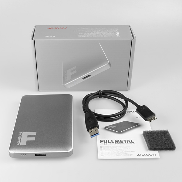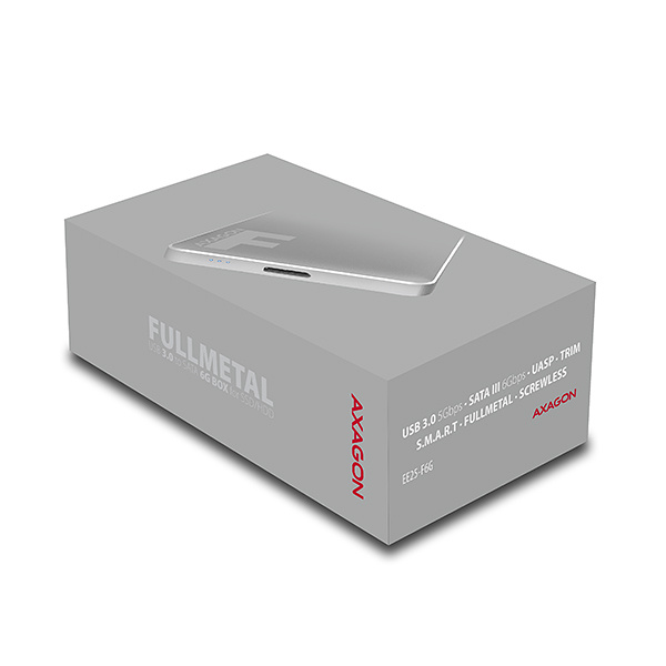 Celokovový externý box AXAGON EE25-F6G Fullmetal IRON GREY s USB 3.0 a SATA 6G rozhraním určený pre 2.5" SATA pevné disky alebo SSD.