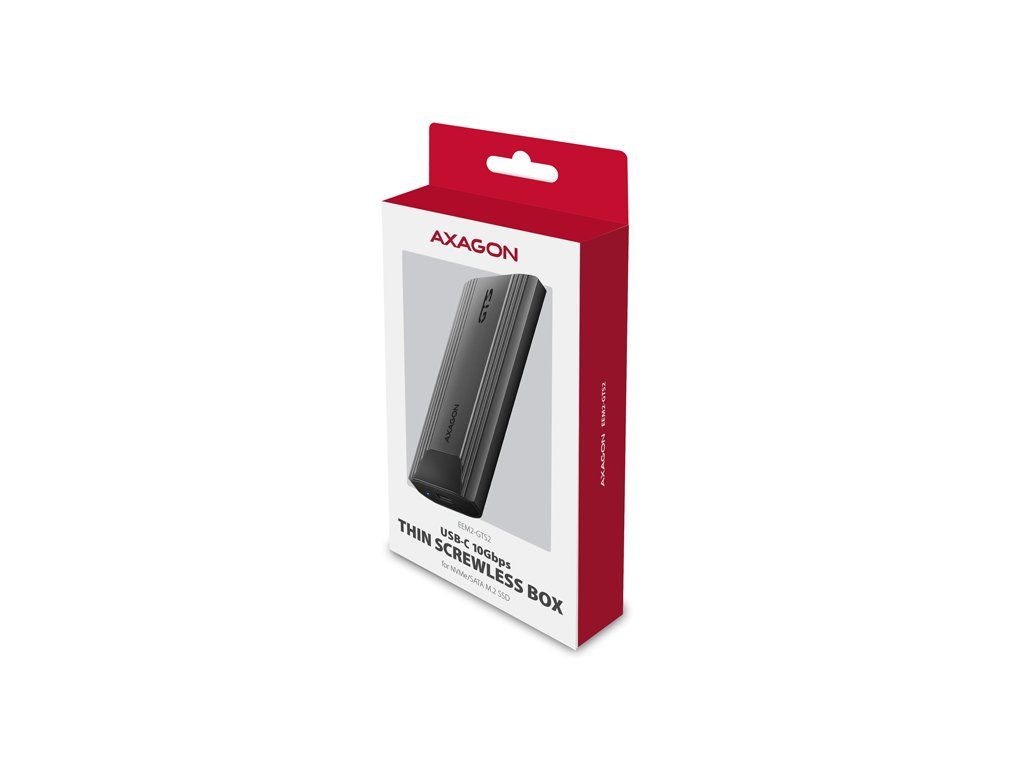 AXAGON EEM2-GTS2, 10Gbps USB-C - M.2 NVMe & SATA SSD kovový THIN box, bezskrutkový