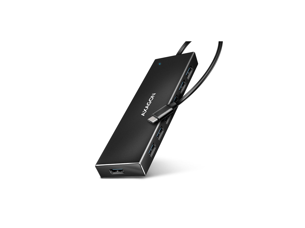 AXAGON HUE-F7C, 7x USB 3.2 Gen 1 ALU FLAT CHARGING hub, micro USB napájací konektor, kábel USB-A 30cm