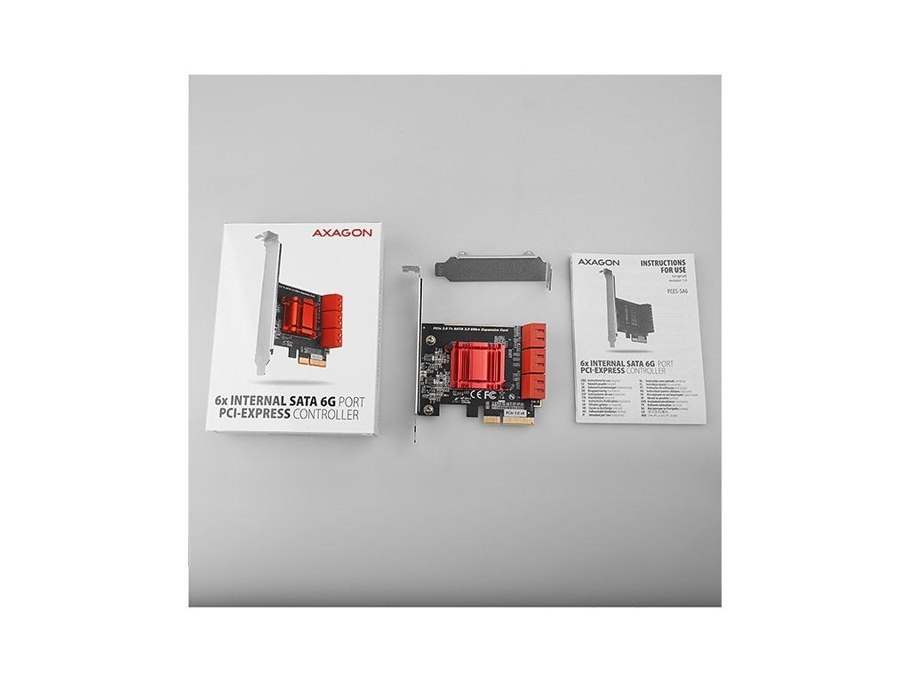 AXAGON PCES-SA6, PCIe radič - 6x interný SATA 6G port, ASM1166, SP & LP