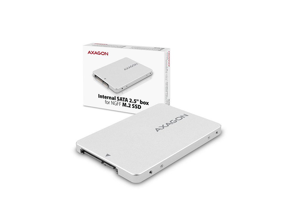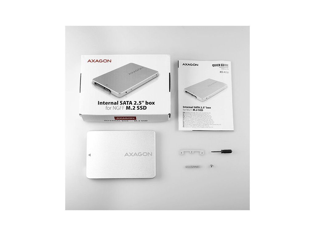 AXAGON RSS-M2SD, SATA - M.2 SATA SSD, interný 2.5'' ALU box, strieborný