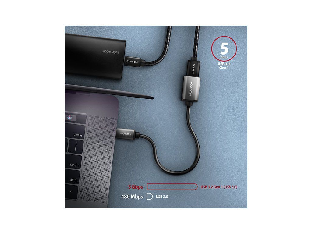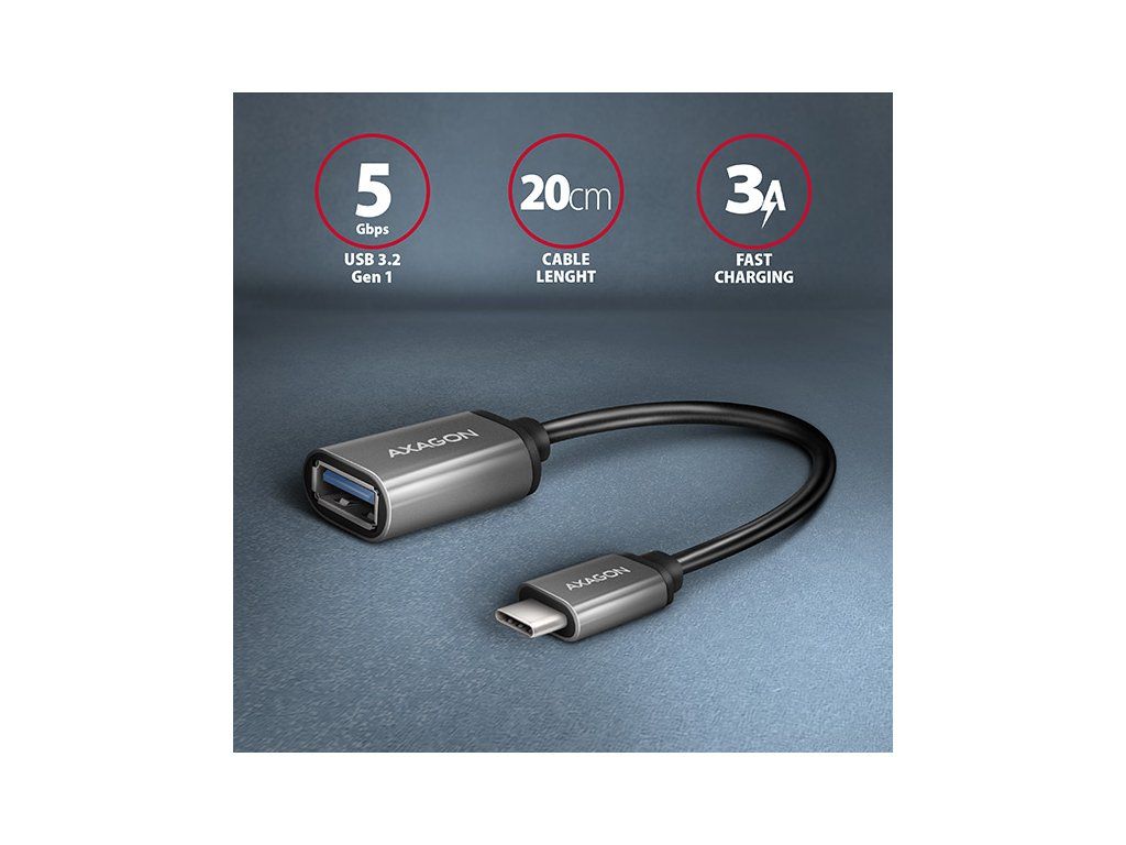 AXAGON RUCM-AFAC, káblová redukcia USB-C (M) <-> USB-A (F), 20cm, USB 3.2 Gen 1, 3A, ALU
