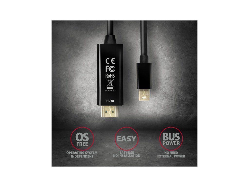 AXAGON RVDM-HI14C2, Mini DisplayPort -> HDMI 1.4 redukcia / kábel 1.8 m, 4K/30Hz