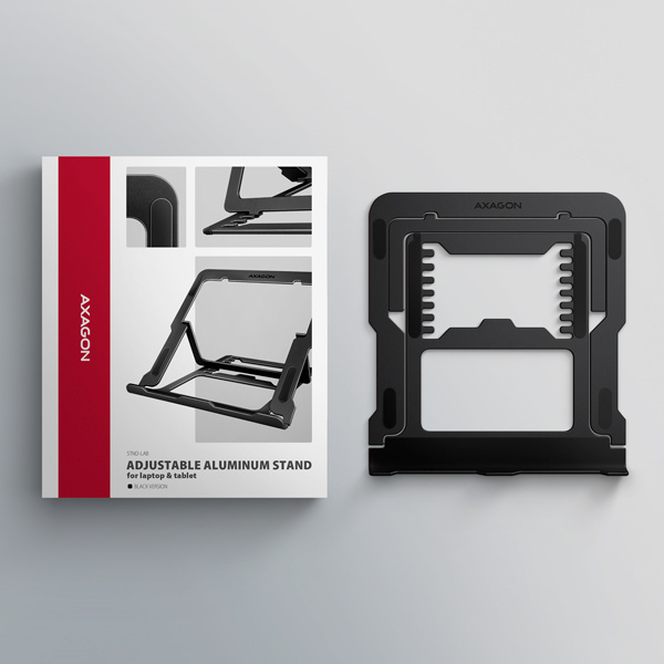 Popis AXAGON STND-LAB, hliníkový stojan pre notebooky 10''-17.3'', nastaviteľná výška, čierny