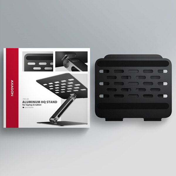Popis AXAGON STND-LQB, hliníkový HQ stojan pre notebooky 10''-17.3'', nastaviteľná výška a uhol, čierny