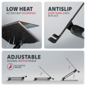 robustních hliníkových odlitků garantujících dlouhou životnost a spolehlivost. Díky protiskluzové úpravě se nemusíte obávat nežádoucích pohybů – vaše zařízení zůstane pevně na svém místě, a to bez poškození povrchu notebooku či podložky. Tyto pečlivě navržené vlastnosti zaručují perfektní stabilitu pro váš