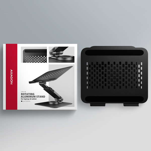 Popis AXAGON STND-LRB, hliníkový stojan pre notebooky 10''-17.3'' s nast. výškou, uhlom a 360 ° rotáciou, čierny