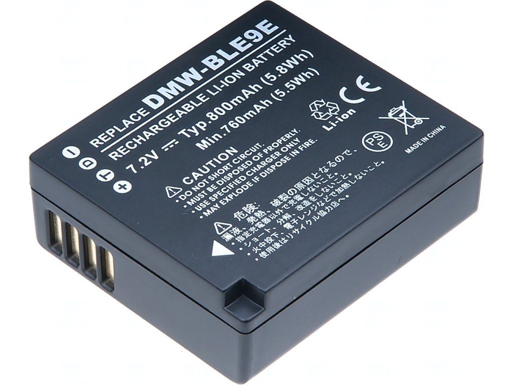 Typ: Li-ion Kapacita: 700 mAh (5.04 Wh) Barva: černá Napětí: 7.2 V Rozměry: 42x36.8x14.2 mm Hmotnost: 37.5 g Produktová čísla: DMW-BLE9, DMW-BLE9E, DMW-BLG10, DMW-BLG10E, BP-DC15 Kompatibilní modely: Panasonic Lumix DMC-GF3, Panasonic Lumix DMC-GF3C, Panasonic Lumix DMC-GF3CR, Panasonic Lumix DMC-GF3CT, Panasonic Lumix DMC-GF3CW, Panasonic Lumix DMC-GF3K, Panasonic Lumix DMC-GF3KK, Panasonic Lumix DMC-GF3KR, Panasonic Lumix DMC-GF3KT, Panasonic Lumix DMC-GF3KW, Panasonic Lumix DMC-GF3P, Panasonic Lumix DMC-GF3R, Panasonic Lumix DMC-GF3T, Panasonic Lumix DMC-GF3W, Panasonic Lumix DMC-GF3X, Panasonic Lumix DMC-GF5, Panasonic Lumix DMC-GF5C, Panasonic Lumix DMC-GF5GK, Panasonic Lumix DMC-GF5K, Panasonic Lumix DMC-GF5N, Panasonic Lumix DMC-GF5R, Panasonic Lumix DMC-GF5T, Panasonic Lumix DMC-GF5W, Panasonic Lumix DMC-GF5X, Panasonic Lumix DMC-GF6, Panasonic Lumix DMC-GF6K, Panasonic Lumix DMC-GF6R, Panasonic Lumix DMC-GF6T, Panasonic Lumix DMC-GF6W, Panasonic Lumix DMC-GF6X, Panasonic Lumix DMC-GX7, Panasonic Lumix DMC-LX100, Panasonic Lumix DMC-TZ80, Panasonic Lumix DMC-TZ100, Panasonic Lumix DMC-TZ101, Panasonic Lumix DMC-TZ81, Leica D-LUX (Typ 109), Panasonic Lumix DMC-TZ85, Panasonic Lumix DMC-TZ90, Panasonic Lumix DMC-FZ80, Panasonic Lumix DC-LX100 II, Panasonic Lumix DMC-ZS100, Panasonic Lumix DC-ZS200, Panasonic Lumix DC-ZS70, Panasonic Lumix DMC-GX80, Panasonic Lumix DMC-GX85, Panasonic Lumix DMC-TX1, Panasonic Lumix DMC-TZ200