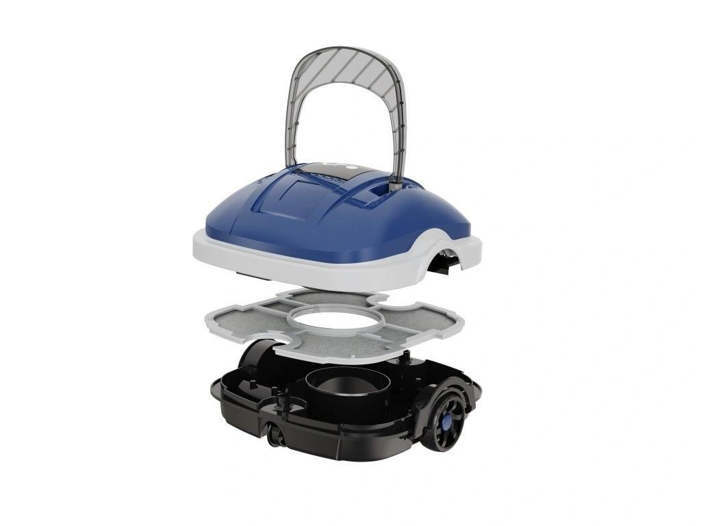 Vysávač vyčistí celé dno vášho bazéna a na konci cyklu sa sám zaparkuje pri stene bazéna, aby ste ho mohli vytiahnuť pomocou háku. Vysávač je vhodný pre všetky typy bazénov na trhu. Vďaka svojmu filtračnému sietu vás zbaví všetkých nečistôt v bazéne. Jemnosť filtra 180 mikrónov je dostatočná na vysatie väčšiny nečistôt (veľkosť zrnka filtračného piesku sa pohybuje okolo 600 mikrónov). Pre zabezpečenie najlepšieho výsledku odporúčame po čistiacom cykle opláchnuť vysávač a filtračné sito čistou vodou.